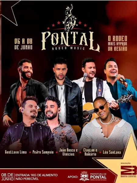 Essa edição da festa que ocupa lugar de destaque entre as tradicionais da região de Ribeirão Preto, vai misturar os ritmos mais populares da música brasileira, trazendo para Pontal, artistas muito queridos do público e que estão entre as preferências dos organizadores de eventos de todo o país.