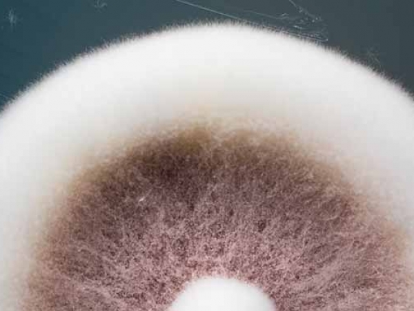 O processo termina com a extrusão, fase em que o fungo coloniza o exterior do hospedeiro, produzindo uma característica camada pulverulenta de conídios, visível a olho nu em tonalidades rosadas — sinal claro da ação do produto no campo.