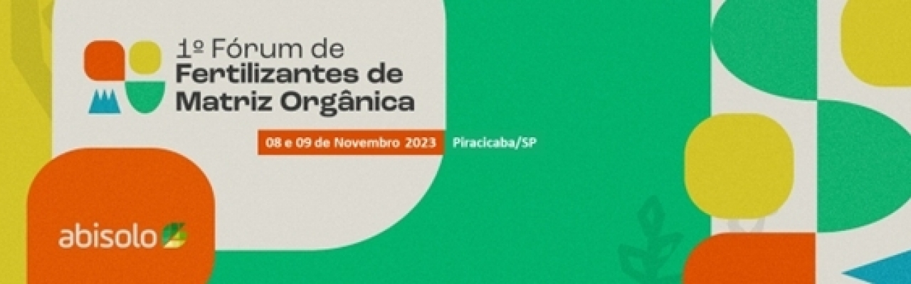 1º Fórum Abisolo de Fertilizantes de Matriz Orgânica Dias: 08 e 09 de novembro de 2023 Horário: 9h às 18h Local: Pecege (Rua Ceriza Giovanoni Moretti, 580 - Santa Rosa - Piracicaba - São Paulo - Brasil)